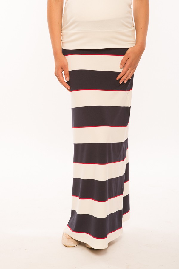 Hosszú kismama szoknya kék-fehér-piros csíkos